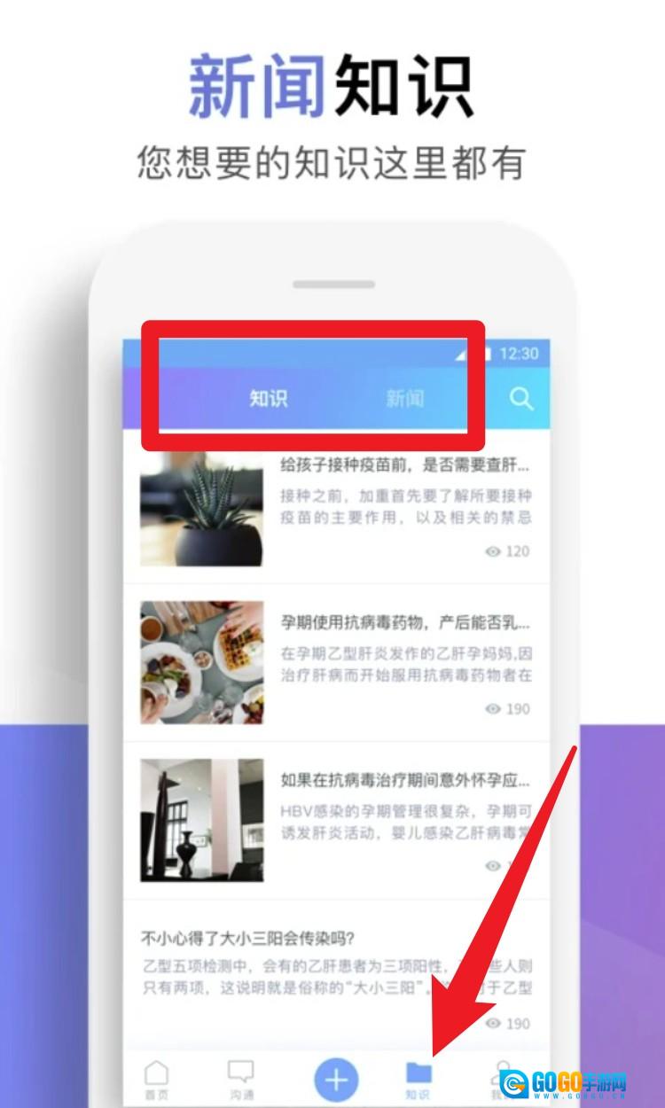 5. 点击底部的知识栏目,即可浏览乙肝科普内容与孕期相关资讯,其中涵盖治疗方案、疫苗接种等实用话题。