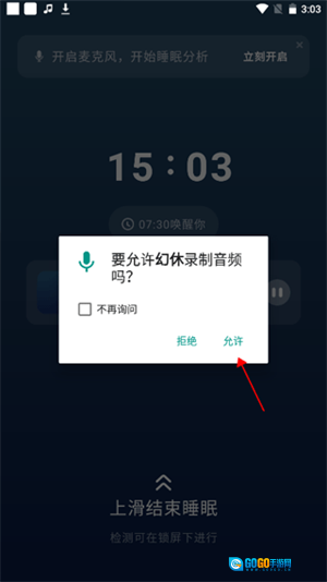 4、开始录音需要获取手机的录制音频权限,开启该权限后即可启动录音功能。