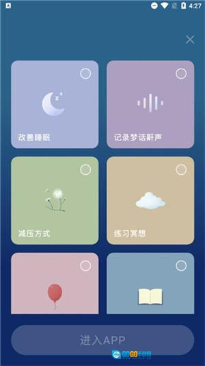 1、启动幻休助眠应用,选择您的使用倾向,以便我们推送更贴合您需求的相关内容;
