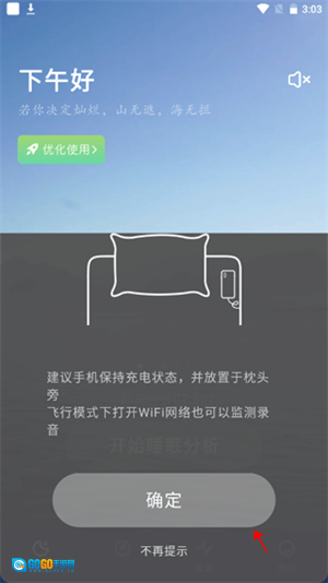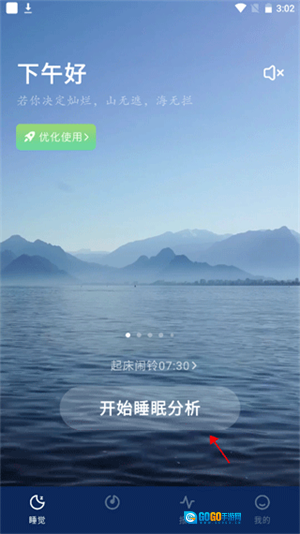 2、登录账号后,若需记录睡眠情况,可点击睡眠模块中的“开始睡眠分析”按钮。