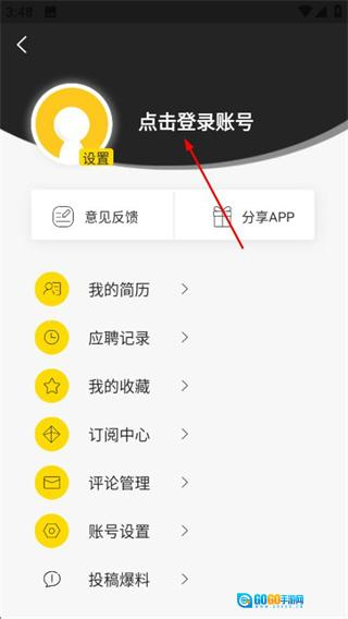 2、进入个人中心页面后,找到并点击“登录账号”选项,即可跳转至登录页面。