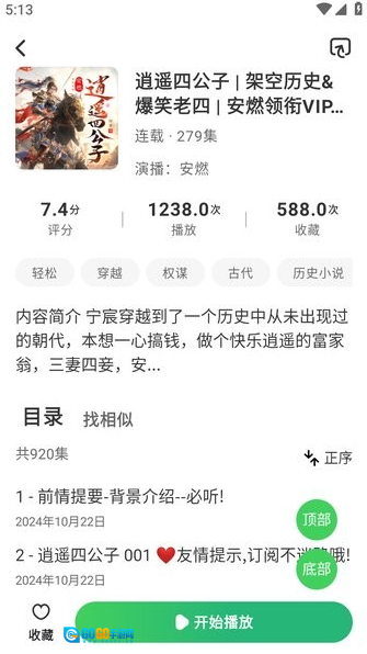 3、为你打造独特的收听体验,完美支持后台播放,顺序、倒序播放。