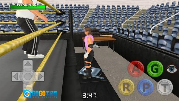 3、擂台策略对抗:利用擂台角落、绳索反弹等环境元素发起反击或躲避攻击,在对手体力耗尽时抓住时机完成压制三秒取胜。