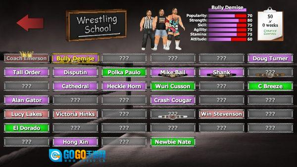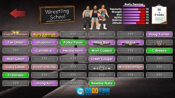1、角色选择与培养:进入生涯模式后挑选初始选手,通过比赛积累经验提升等级,解锁新技能并增强属性,逐步成长为顶级摔跤明星。