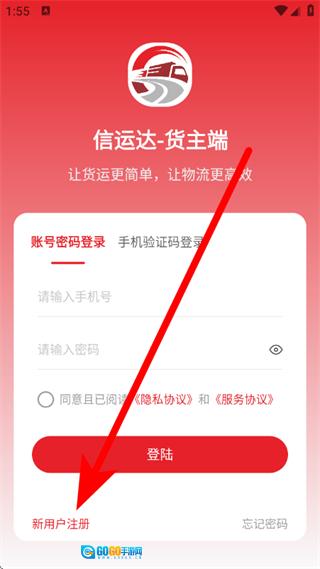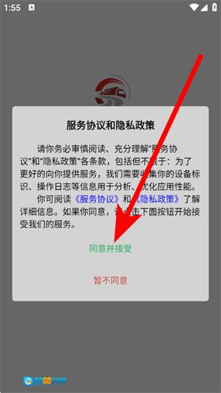 1、打开信运达货主端,点击同意并接受,进入登录界面。