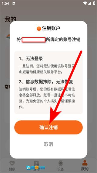 3、在账户注销的提示页面,点击确认注销按钮,即可完成账号注销流程。