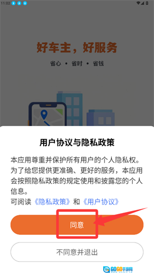 1、首先打开应用阅读完“用户协议与隐私政策”后点击“同意”按钮进入。