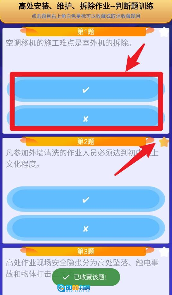 5、判断题练习界面中,点击勾选或叉号即可作答,同时可点击右上角星标收藏该题以便日后复习使用。