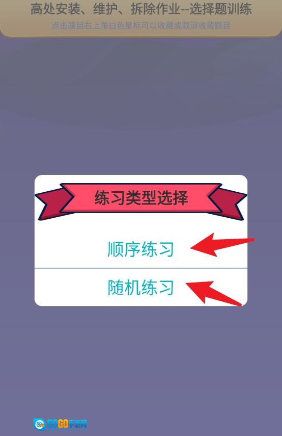 2、选择高处安装、维护、拆除作业后,点击进入练习方式界面,提供顺序或随机两种训练模式。