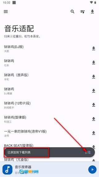 3、软件会自动把这首歌曲添加到列表里,点击“前往”就能查看进度了。