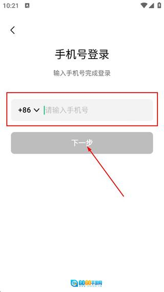 3、进入手机号登录页面后,先在“请输入手机号”的输入框中填写相关信息,接着点击“下一步”按钮。