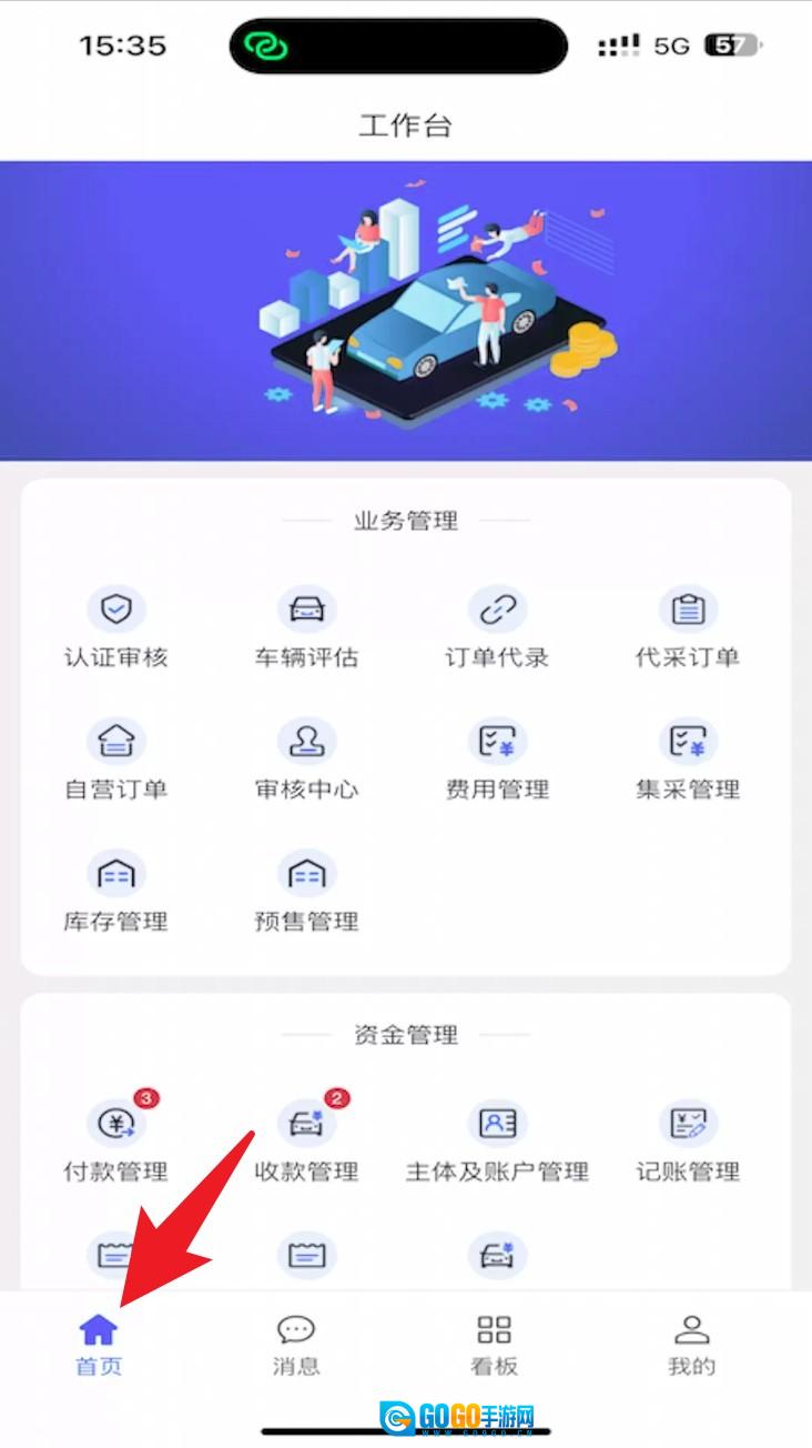 2. 登录成功后,系统会自动跳转到首页,在首页能够访问业务管理模块和资金管理模块。