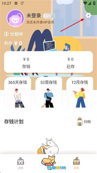 2、在存钱页面点击右上角的设置图标,进入设置页面。