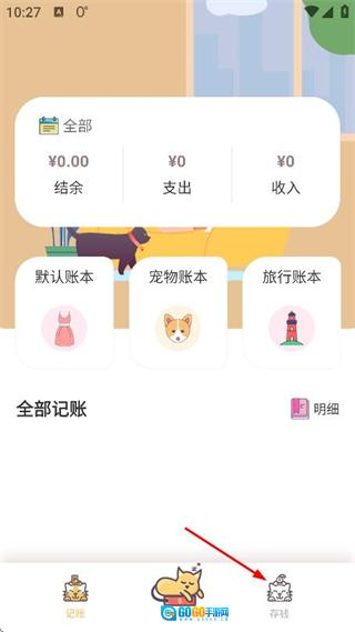 1、在记账应用的首页,点击底部导航栏中的存钱选项,即可进入存钱页面。