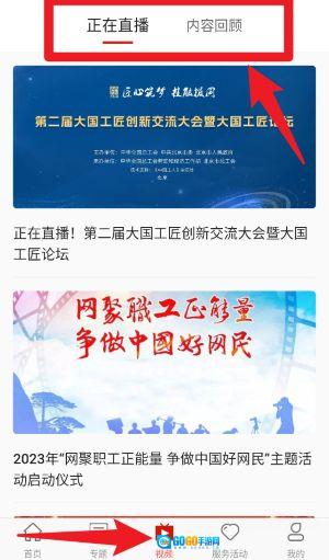 3、视频栏目包含正在直播与内容回顾两类,点击任意一个栏目,就能观看直播或者回放过往的历史视频。