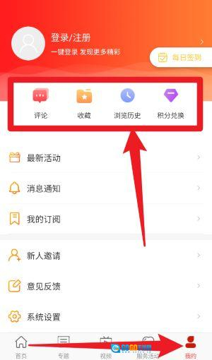 5、进入我的页面后,可查看评论、收藏、浏览记录以及积分兑换相关内容,此外还能对个人设置与账号信息进行管理。
