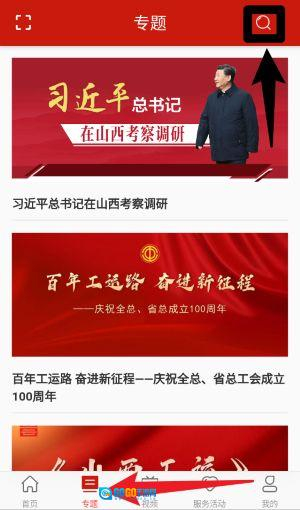 2、进入专题页面后,能够查看重大主题报道,页面右上角的放大镜图标可用来对专题内容进行关键词搜索。
