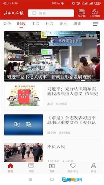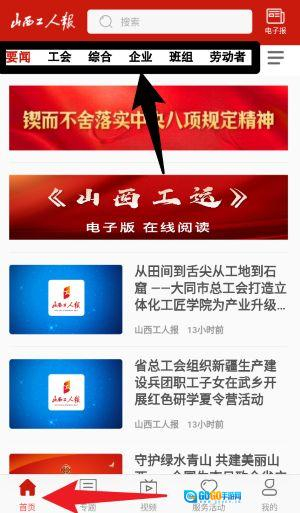1、在首页能够查看要闻、工会、综合等栏目的内容,点击对应的标签就能切换到相应的资讯分类。