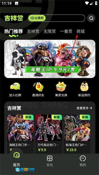 1、打开吉祥赏首页后,点击页面顶部的“商城”选项,即可进入商城的商品列表页面。