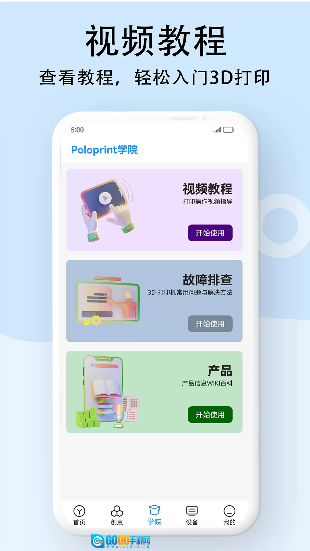 5、学院板块包含新人学院、视频教程及产品百科,助力用户掌握打印与设备相关知识。