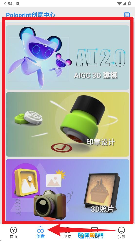 4、创意中心整合了AI 3D建模、设计以及3D照片等功能模块,能够适配多样化的创作形式。