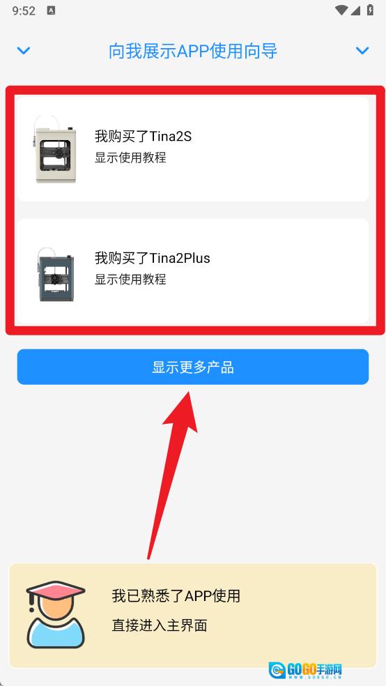 2、登录后选择已购买的Tina2S或Tina2Plus设备,也可点击按钮查看更多可选产品。