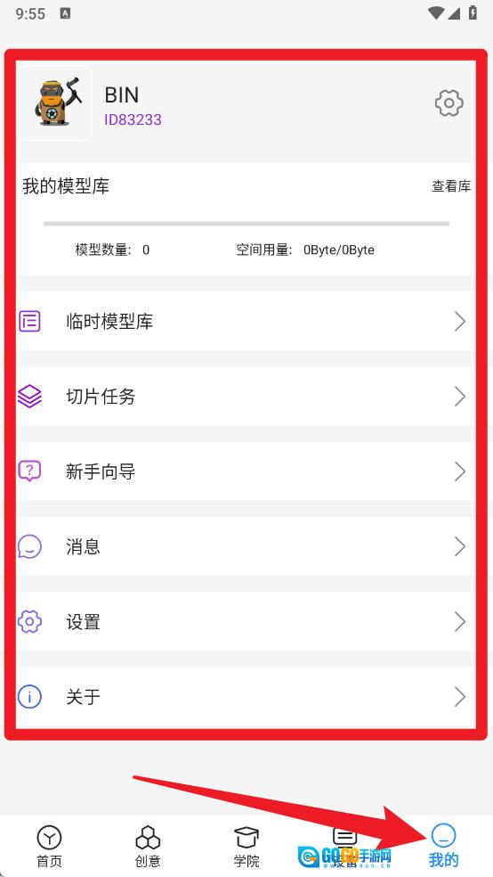 7、我的页面可查看模型库、切片任务及消息,并进行设置和查看新手向导。