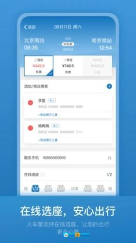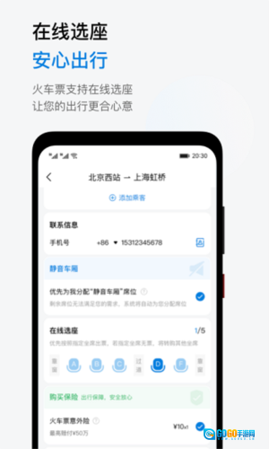 火车票支持在线选座,让您的出行更合心意。