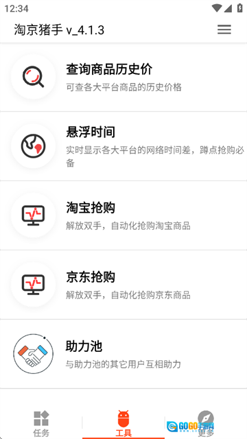 淘京猪手App是一款购物辅助应用,用它能查不同平台同一商品的价格,一眼找出最便宜的,不用自己来回切换软件比价,轻松用实惠价买到想要的东西。能在上面接任务,淘宝、京东刚上的新任务,这边都会及时更,跟着做就能拿奖励,查商品以前卖过的价格、直接在上面免费买些东西也都能实现。平时爱网购的话,这个App别错过,用用就知道方便了。