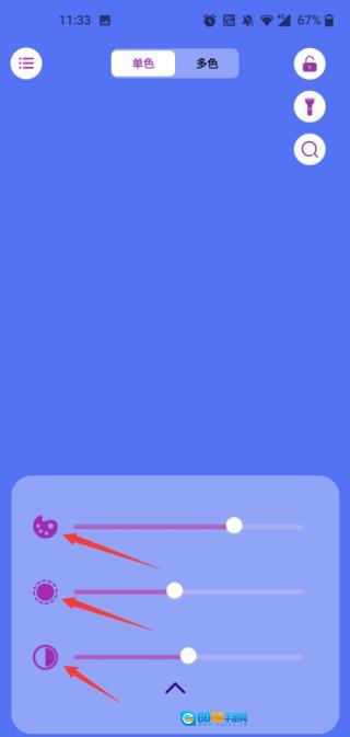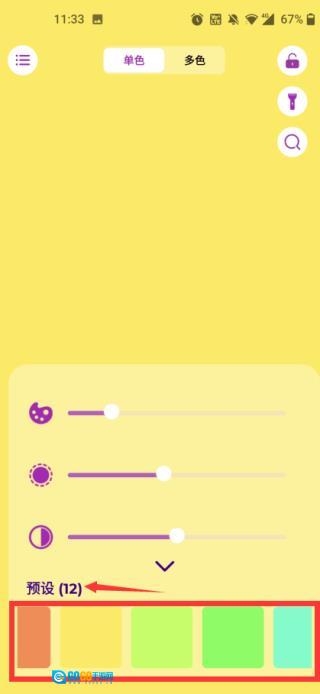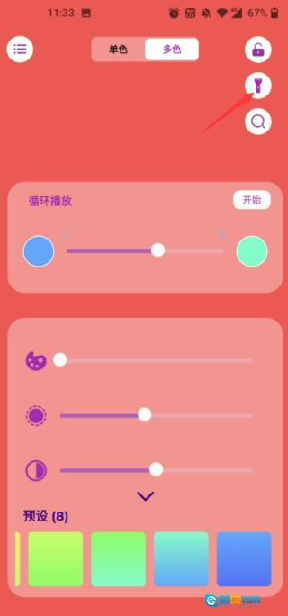 3、把氛围灯光亮度调节好之后,点击右上角的手电筒按钮,就能开启灯光了。