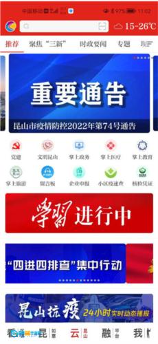 3、进入云昆山后,这里能看到一些时政要闻,专题内容以及最新的疫情新闻也都可以在此查询。
