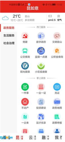 2、打开昆如意平台,这里设有生活服务、政务服务、社会治理三大板块,每个板块都包含着不同的服务内容。