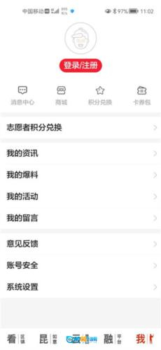 5、进入“我的”页面,在这里你可以进行安全设置操作,也能使用积分兑换礼品。