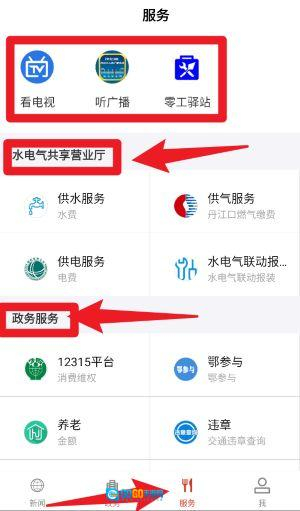 4、服务板块涵盖电视广播收听、零工驿站、政务服务、消费维权、养老服务、交通违章查询等各类便民功能。