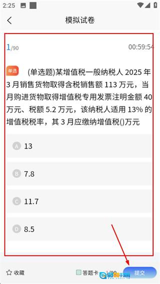 3、进入答题页面后,可挑选题目对应的选项进行作答,全部完成后点击提交按钮即可。