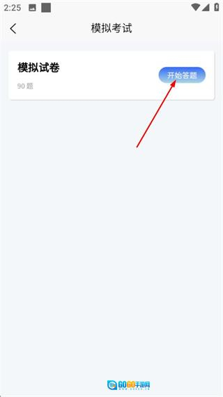 2、进入模拟考试页面后,找到模拟试卷,点击其右侧的“开始答题”按钮,即可进入试卷答题界面。