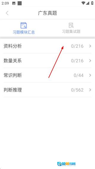 3、进入地区真题页面后,选定目标模块,即可进入该模块的练习页面。