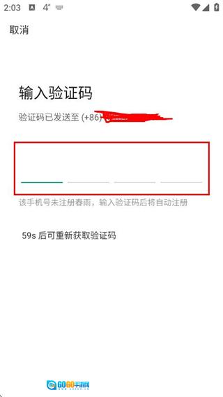 4、在短信验证码输入页面填写接收到的验证码,以此完成账号登录流程。
