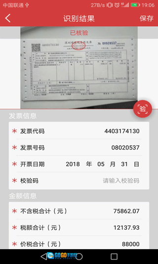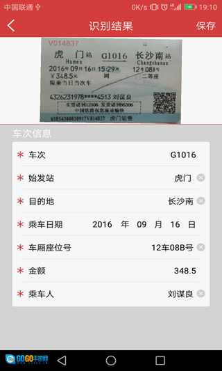 2、挑选需要进行识别的图片,点击“发票识别”或者“火车票识别”按钮,软件便会自动对票据信息展开处理和识别。识别结束后,能够查看票据的详细信息,并且识别结果会被自动保存。