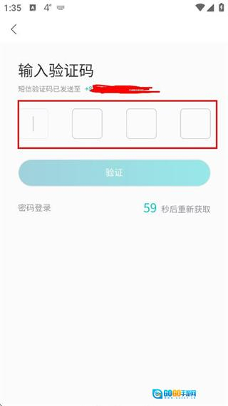 3、在验证码输入框内填入收到的验证码,点击验证按钮以完成账号登录流程。