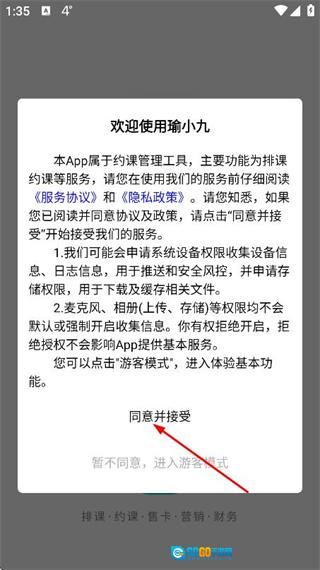 1、在使用协议与隐私政策弹窗里点击同意并接受,即可进入登录页面。