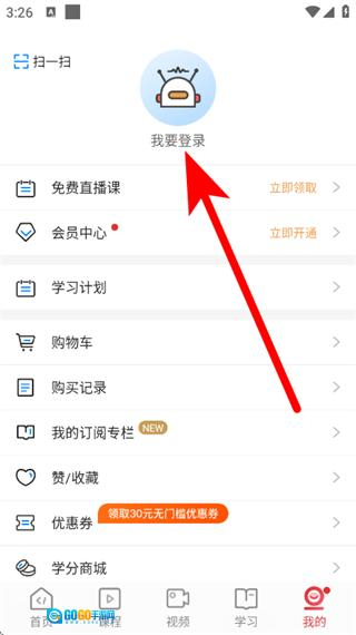 2、在个人页面,点击我要登录,进入登录注册界面。