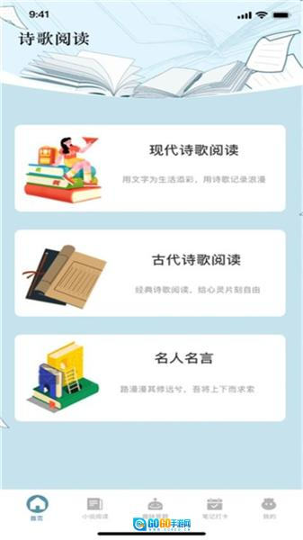 提供现代诗歌和古代诗歌阅读,以及名人名言,让用户在阅读中感受文字的魅力,提升文学素养。