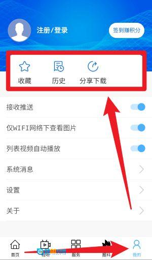 5、在“我的”页面,用户能够查看收藏内容、历史浏览记录以及分享记录,同时还可以进行系统设置操作、查看消息通知,并对个性化配置进行管理。