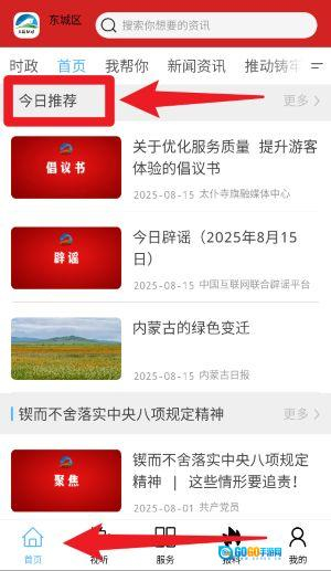 2、进入首页后,点击“今日推荐”栏目,就能浏览每日精选的热门资讯和推荐内容,从而快速获取最新信息。