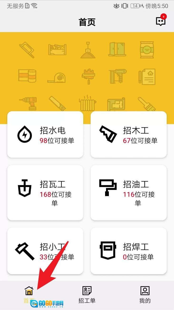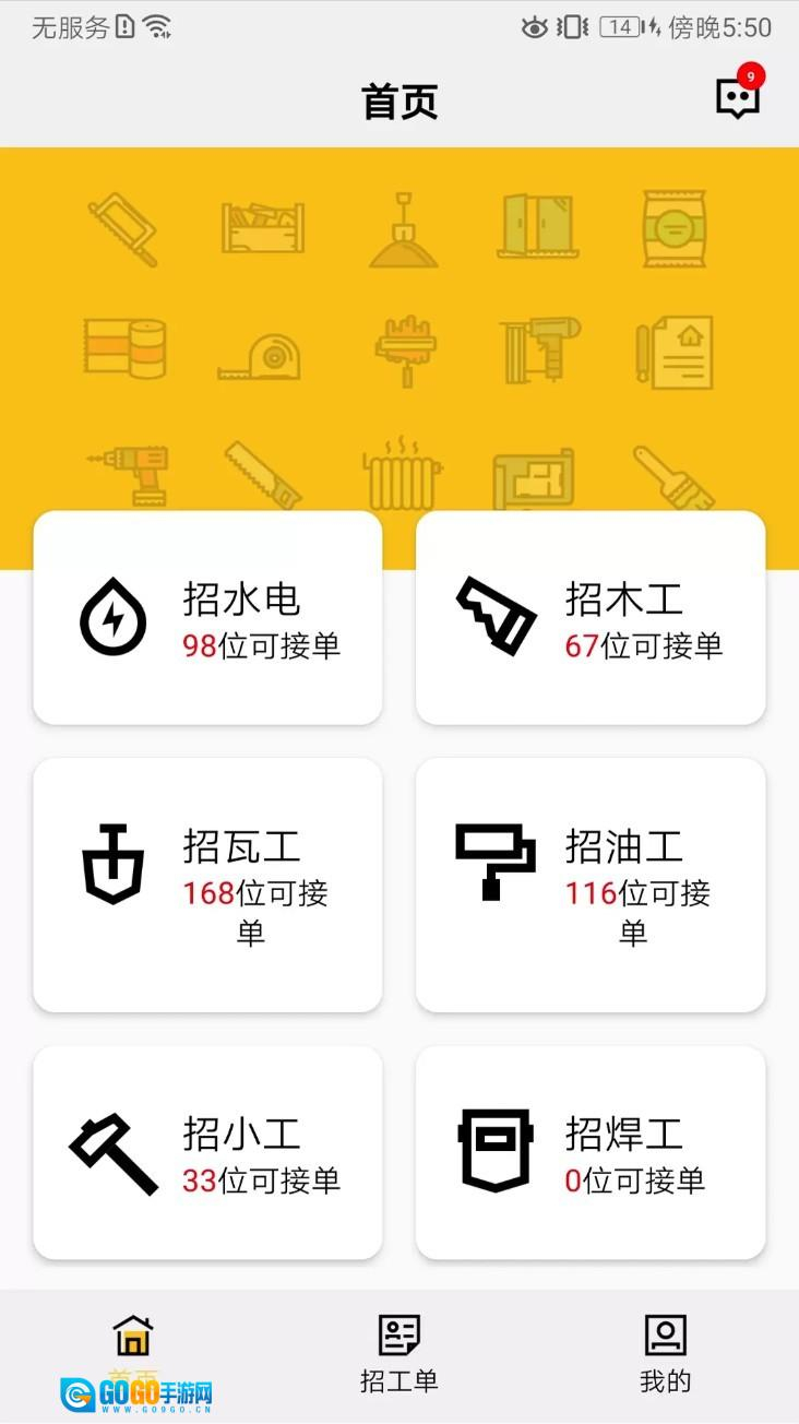 2. 登录成功后,首页会呈现出各类分类板块,像招水电、招木工、招油工之类的,大家能够依据自身需求点击进入,查看具体详情。
