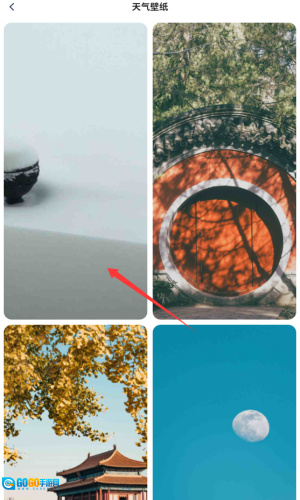 3、在天气壁纸展示中,浏览右上角红框标注的图片。