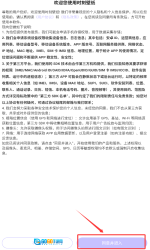 1、阅读隐私条款后,点击红框标注的同意并进入按钮。