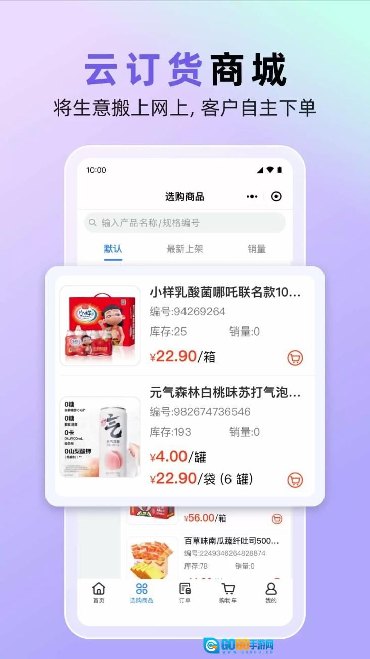 4. 点击底部导航选购商品,进入云订货商城,自主挑选商品,查看库存与价格并快速下单。