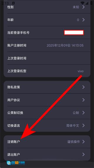 3、进入设置页面后,找到并点击“注销账户”选项,此时会弹出用于确认注销操作的提示框。